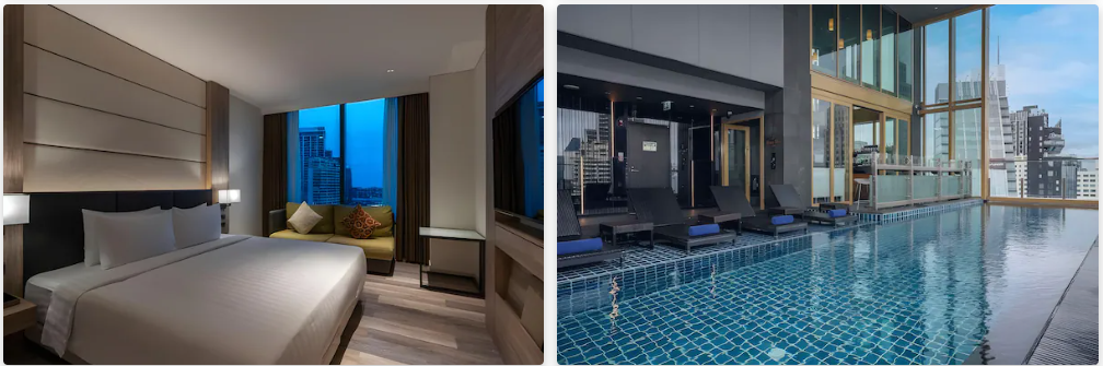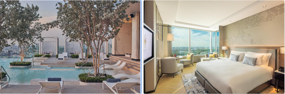 ►5星級飯店、每間都是高樓層、高樓層無邊際泳池有兩座分別在22層跟37層、BTS(空鐵)空橋一分鐘到飯店